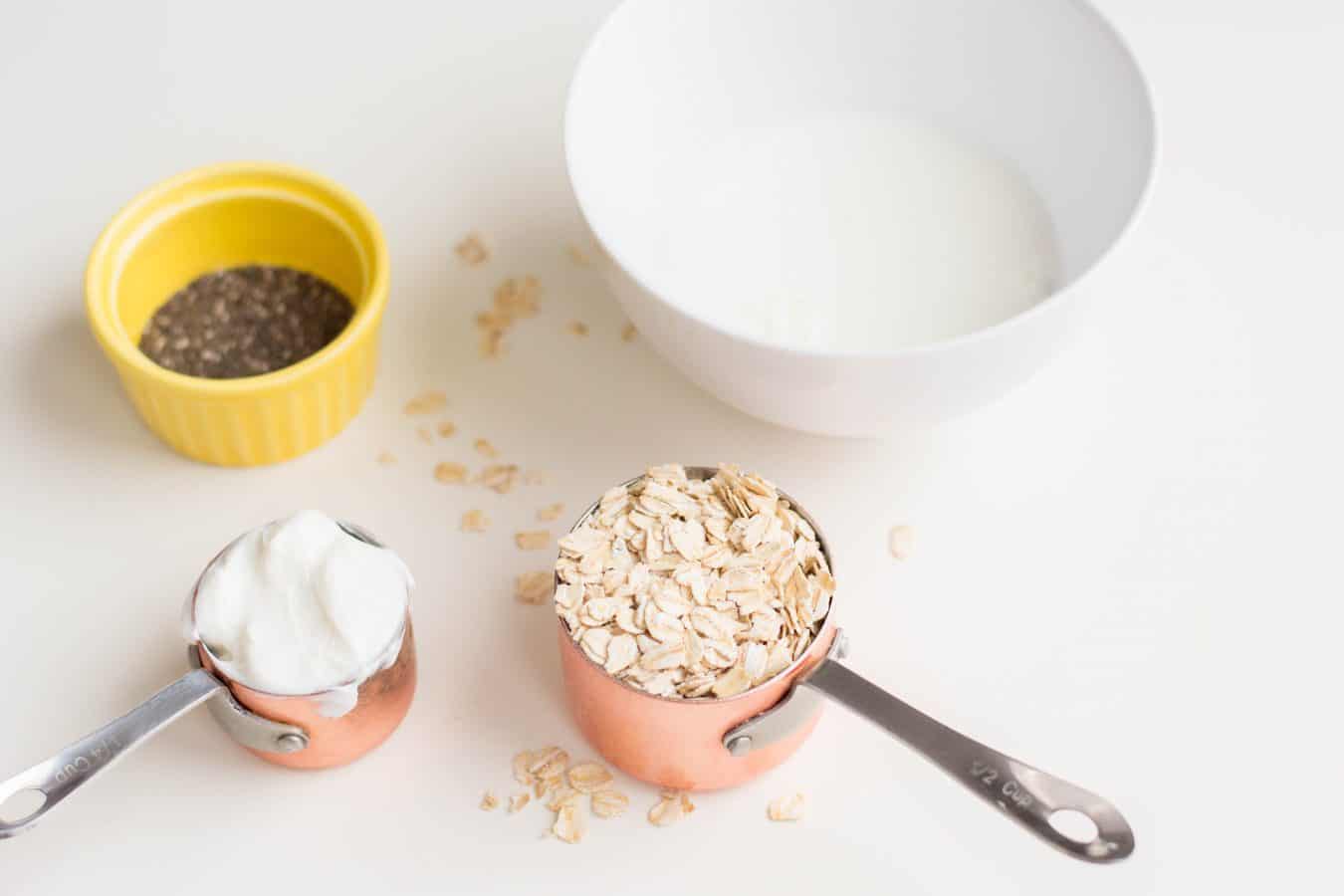 The best part is that if you use the Basic Overnight Oats recipe. You'll be so glad you tried it. It's so easy to adapt it any way you like. You can add pumpkin this recipe or bananas or basically any fruit you'd like. Who wouldn't like oatmeal with yogurt and chia seeds * added to it?