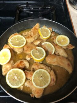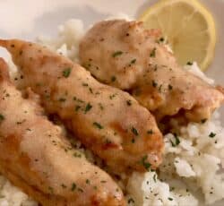 My children love this sauce and fight over all the last bits in the pan. I really like it with roasted asparagus or roasted broccoli on the side. If you have picky eaters, you can even give them a chicken finger before you put the lemon sauce on it and let them dip it in ketchup or honey mustard sauce.