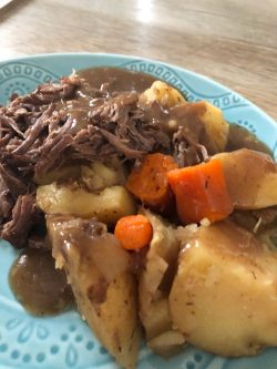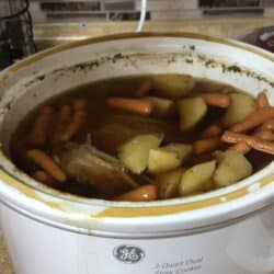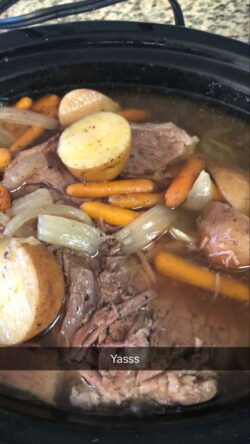 Yay! so exited for this recipe! I have a one year old who is going to love it- and a picky husband who says hes not picky.. but he really is. haha. My grandmother used to make pot roast in the crock pot, but i never knew how she did it- i used a fair amount more potatoes and less onion- so hopefully it will turn out well. also seasoned my beef before putting it in- Thanks so much for your recipes!