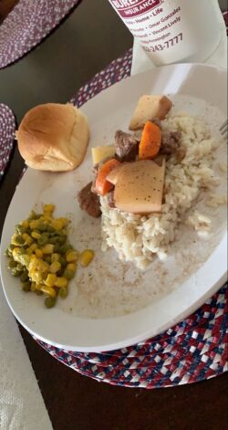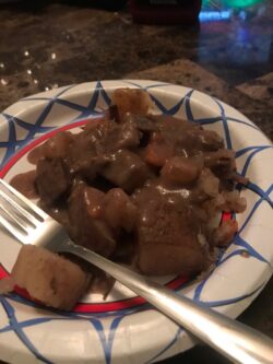 But it was soooo dry. I think half the problem was probably the cut and quality of the meat, but I know part of it was because she cooked it dry in the oven. I must confess though that part of the problem was the potatoes. I never met a potato I liked. There are a few ways I can tolerate a potato.