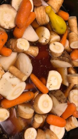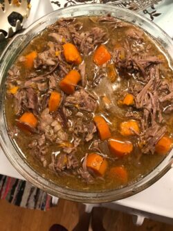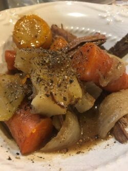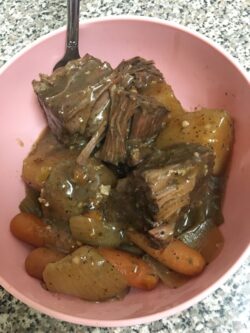I'm eatting this right now! Mmm. I doubled the powder onion and garlic and added a bit of Italian seasoning. I also added celery. It's amazing! It's almost just like my moms roast but much better for me! Thank you!!