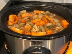 - Add Ingredients: Add the roast to the crockpot, then the rest of the ingredients. The roast should be covered in liquid so, if necessary, add water until it is covered.