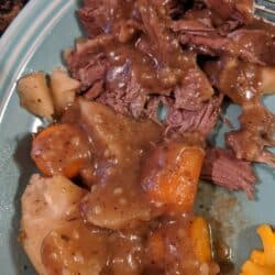 The gravy is really easy to make and you can easily make a gluten-free pot roast by using a gluten-free flour * or "Clean" by using whole wheat flour, spelt flour * or einkorn flour *. To make this Paleo, just use turnips instead of white potatoes and tapioca flour * or arrowroot starch * for the gravy.